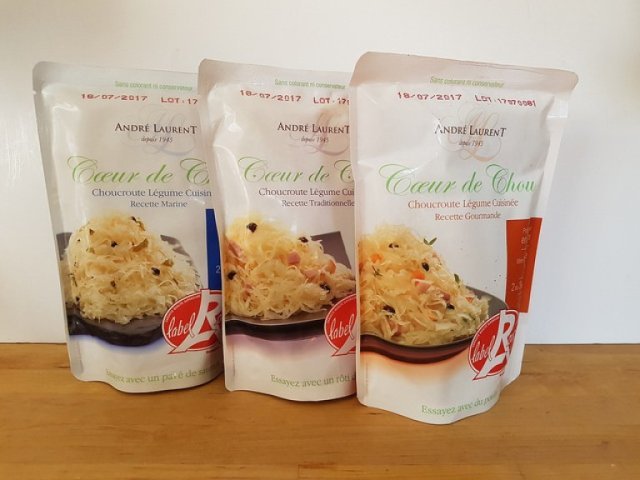 J’ai utilisé pour ma recette de la choucroute de la marque André Laurent. Cette société produit depuis de nombreuses années de la choucroute et s’occupe de la sélection des semences, de la culture du chou et de la transformation de sa propre récolte. Elle s’attache à respecter les traditions ancestrales pour produire une choucroute de qualité avec une fermentation naturelle, tout en s’adaptant aux nouvelles technologies pour mettre sur le marché des produits savoureux et modernes dans leur conditionnement, en doypack par exemple.