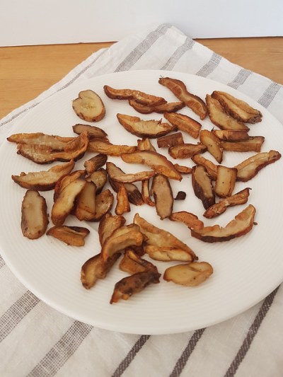 – Nettoyer les cèpes, couper le pied terreux. Les découper en fines lamelles et les déposer sur la lèche-frite du four recouverte de papier sulfurisé ou d’un tapis en silicone. A l’aide d’un pinceau, les badigeonner d’huile d’olive, saler et poivrer. Faire cuire les chips de cèpes pendant 15 minutes à 180°. Laisser refroidir.