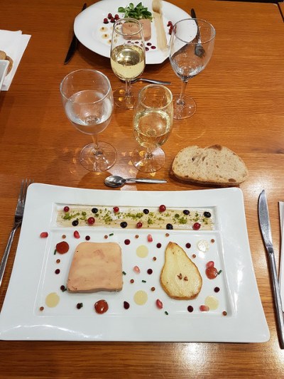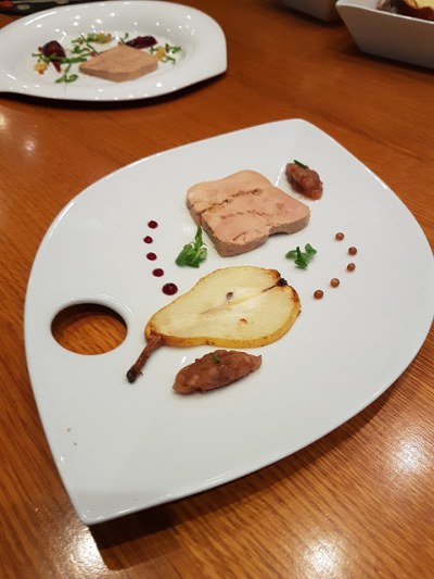 Il y a quelques semaines, j’ai participé à un cours de cuisine pour nous présenter les produits de chez Rougié [1]à l’occasion de l’ouverture de leur site de vente en ligne [1] pour les particuliers (c’était réservé aux pro jusqu’à présent). Jean-Luc Danjou, le chef Maison, nous a aidé à mettre en valeur le foie gras pour réaliser de jolies assiettes de fêtes, voici la mienne avec une belle tranche de foie gras nature, de la gelée de yuzu, de la gelée de Porto, un chutney de betterave et d’autres petites choses goutteuses et jolies.