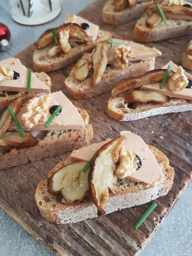 Les assiettes des copines étaient également très jolies ! Mais bon d’un autre côté c’est pas trop ce que je fais à la maison, je suis plus dans la simplicité, mais cela donne des idées pour les fêtes qui vont très vite arrivée. Côté idées justement je vous propose une p’tite recette de tartines apéro avec du foie gras. Comme c’est un produit assez cher si vous êtes nombreux pour les fêtes c’est pour moi une bonne idée de le proposer en petite touche en apéritif plutôt qu’en entrée.