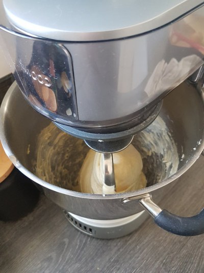 – Mettre le mélangeur K (ou feuille) sur votre robot pâtissier. Mélanger pendant 20 secondes les ingrédients.