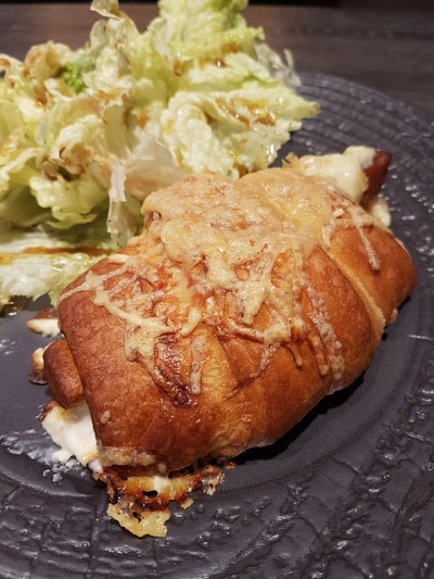 J’aurai pu réaliser la recette avec des croissants tout prêts, les garnir de jambon, sauce béchamel et de gruyère, mais en voyant de la pâte à croissant au rayon des pâtes à tartes de mon supermarché, l’idée m’est revenue et je me suis amusée à tester.