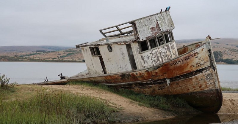 Après être passé par Point Reyes Station et avant d’arriver au Phare nous avons fait un arrêt au Martinelli Park, à Tomales Bay pour découvrir le bâteau échoué sur la plage. La zone est très nuageuse, un gros brouillard bas recouvre l’horizon on se demande si on a bien choisi notre jour pour venir découvrir Point Reyes Station !