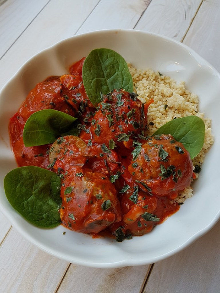 Avec quelques jeunes pousses d’épinards pour la couleur, de la semoule pour absorber la sauce, c’était le plat parfait pour faire plaisir à ma p’tite famille. Ne changez rien, cette recette est parfaite comme cela !