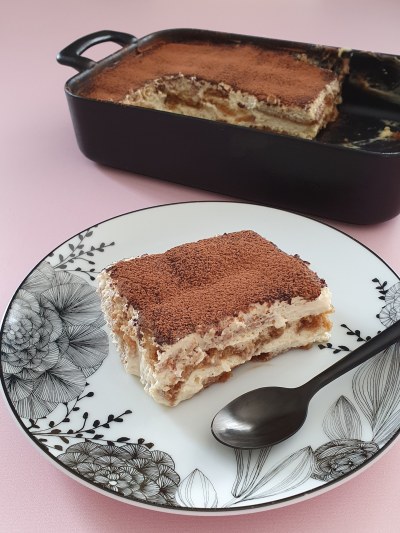 Il est comment pour vous le tiramisu parfait ? Le mien n’est ni trop crémeux ni trop dense, mais se tient parfaitement à la découpe, il est bien équilibré avec des couches de biscuits et de crème et un léger voile de cacao amer. Il est peu sucré pour ne pas être écoeurant dès la première bougée et légèrement mousseux sans être trop riche en oeufs.