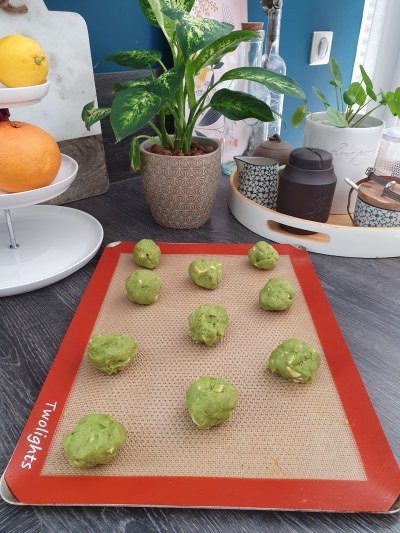 Mon p’tit bonhomme a adoré, il n’a même pas vu que les cookies étaient verts, et a apprécié aussi bien leur texture que leur saveur. J’ai pu en voler un avant qu’ils ne soient terminés et c’est vrai qu’ils sont totalement addictifs !