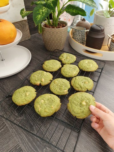 La recette des cookies au thé matcha et au pépites de chocolat blanc