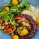 Alors j’ai tenté moi aussi de faire une version simplifiée de sa recette, avec du poulpe grillé à la plancha, accompagné d’une salade de pois chiches au poivron et de houmous maison.
